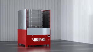 Der Viking Brandschutzcontainer wird für die Lagerung von leicht entzündlichen IBCs (Intermediate Bulk Containers) in Produktions- und Prozessbereichen, kleinen Lagern oder ähnlichen Umgebungen verwendet. Das Gerät ist besonders nützlich, wenn eine begrenzte Anzahl von Großpackmitteln (IBC) in einen Bereich gebracht wird, in dem ein festes Brandschutzsystem nicht vorhanden ist oder die zusätzlichen Risiken, die mit Flüssigkeiten der Klasse B verbunden sind, nicht wirksam abdecken kann. Vorbehaltlich der Zustimmung der AHJ bietet das Gerät auch die Möglichkeit, nicht gelistete/zugelassene IBC-Container zu verwenden.