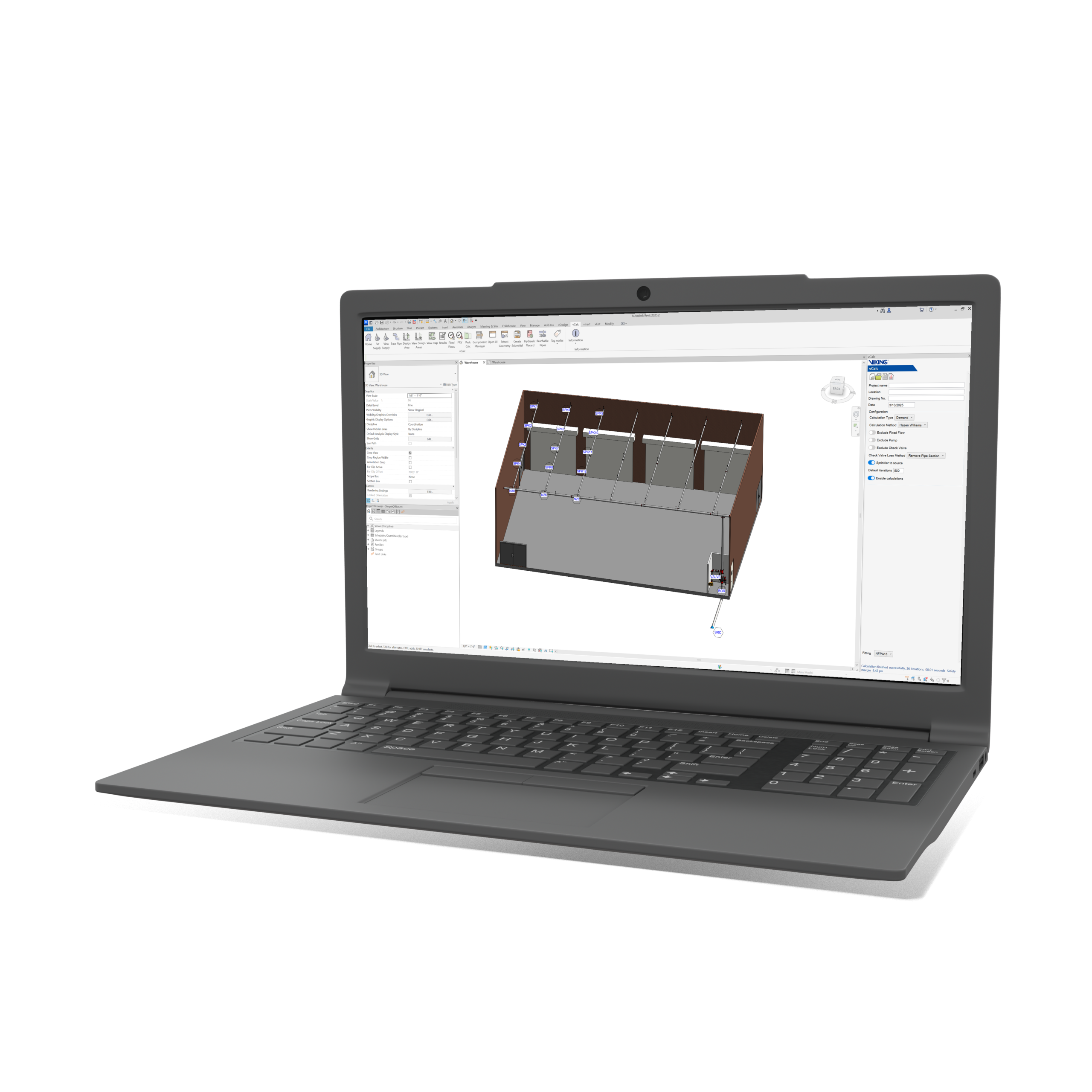 The vCalc and vDesign package simplifies fire protection system design. It allows engineers, designers, and students to create complete systems, perform accurate hydraulic calculations, and visualize layouts in 3D. The suite is free, fully customizable, and provides easy access to the full Viking Revit library.